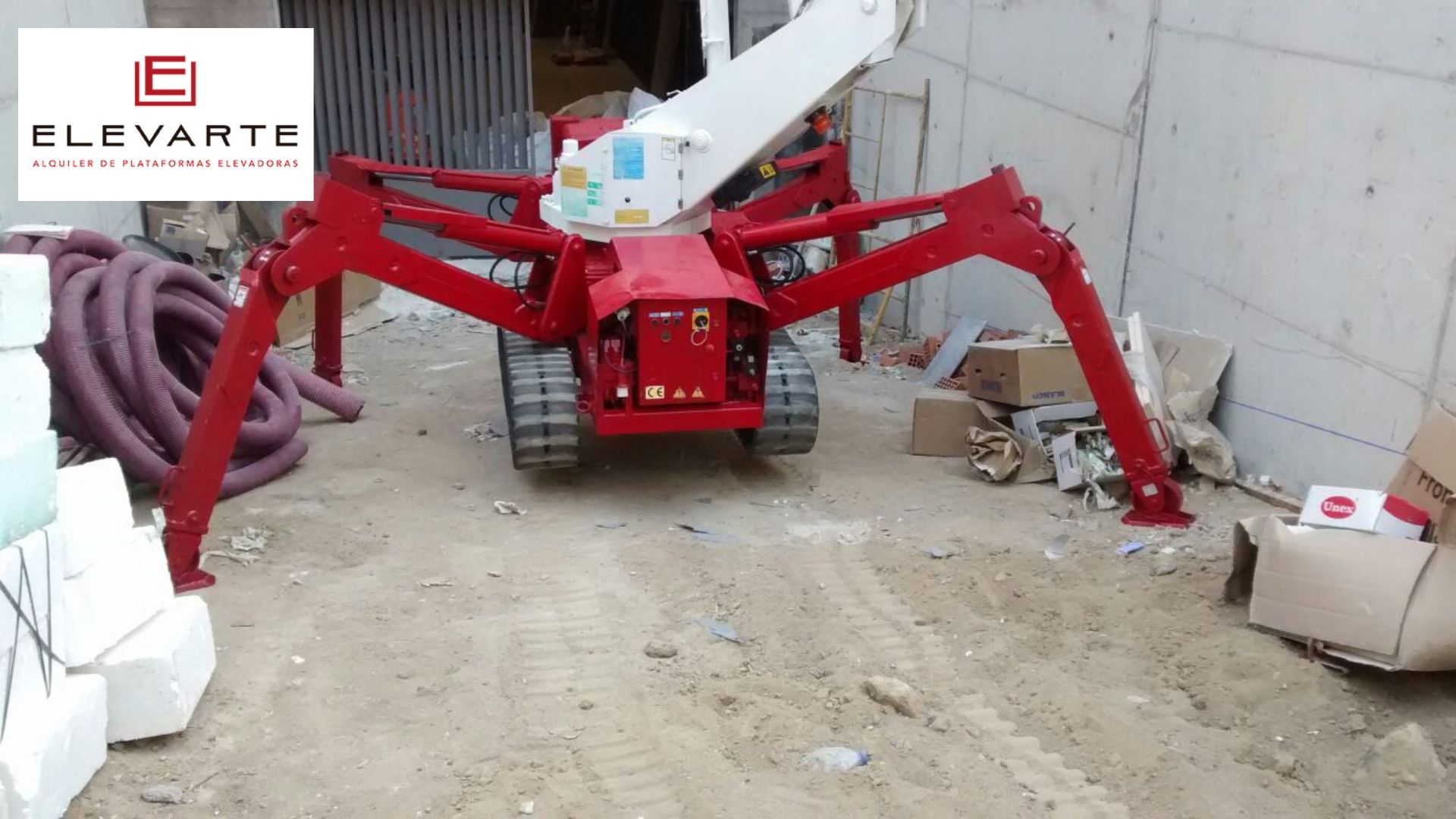 Plataforma Araña 30 metros trabajando en rampa de garaje.