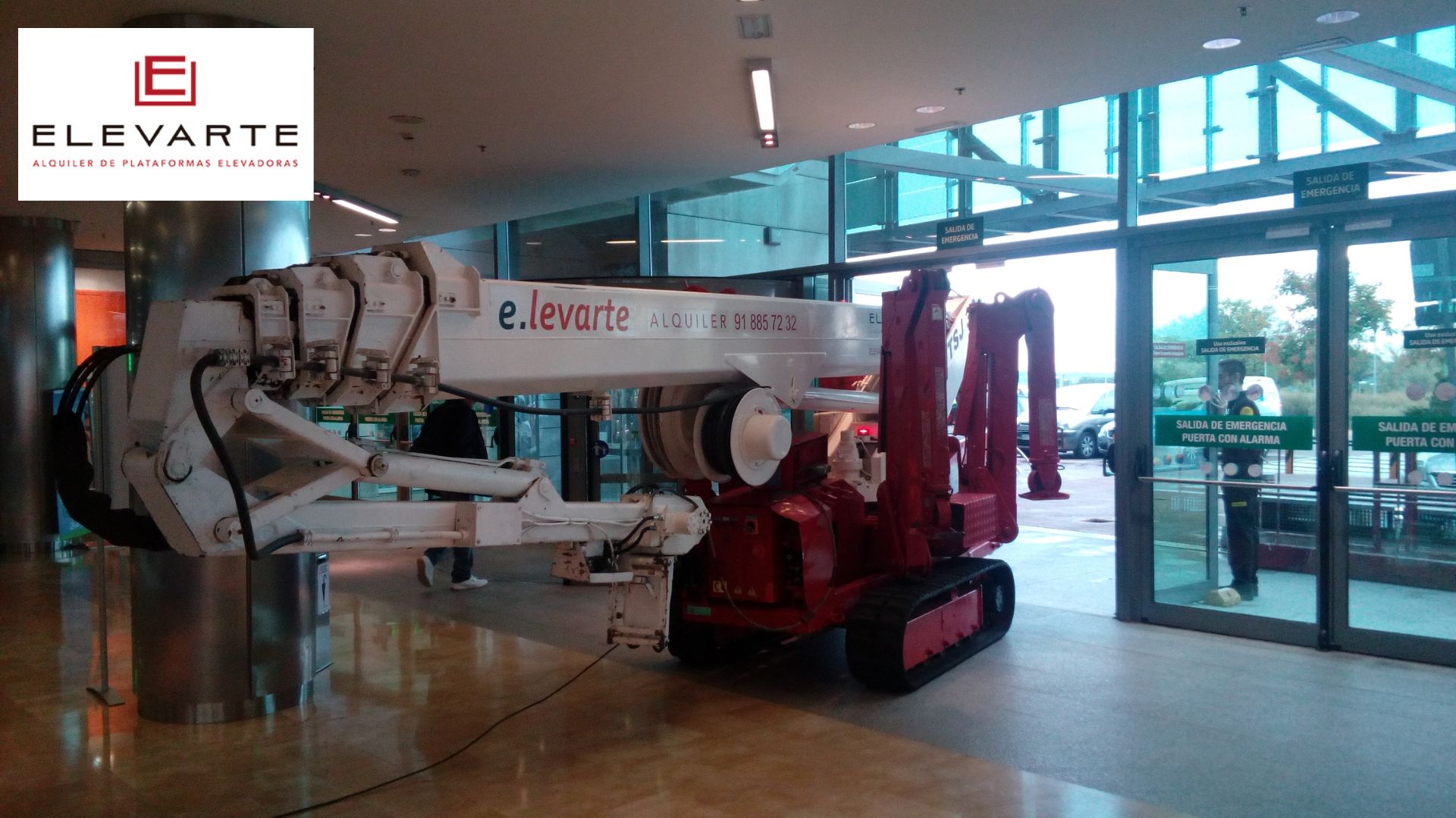 Plataforma araña 30 metros por paso puerta doble de Centro Comercial Zielo Shopping, Avenida de Europa, 26B. Pozuelo de Alarcón. (Madrid)