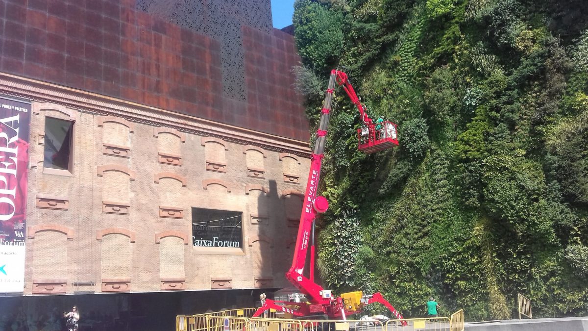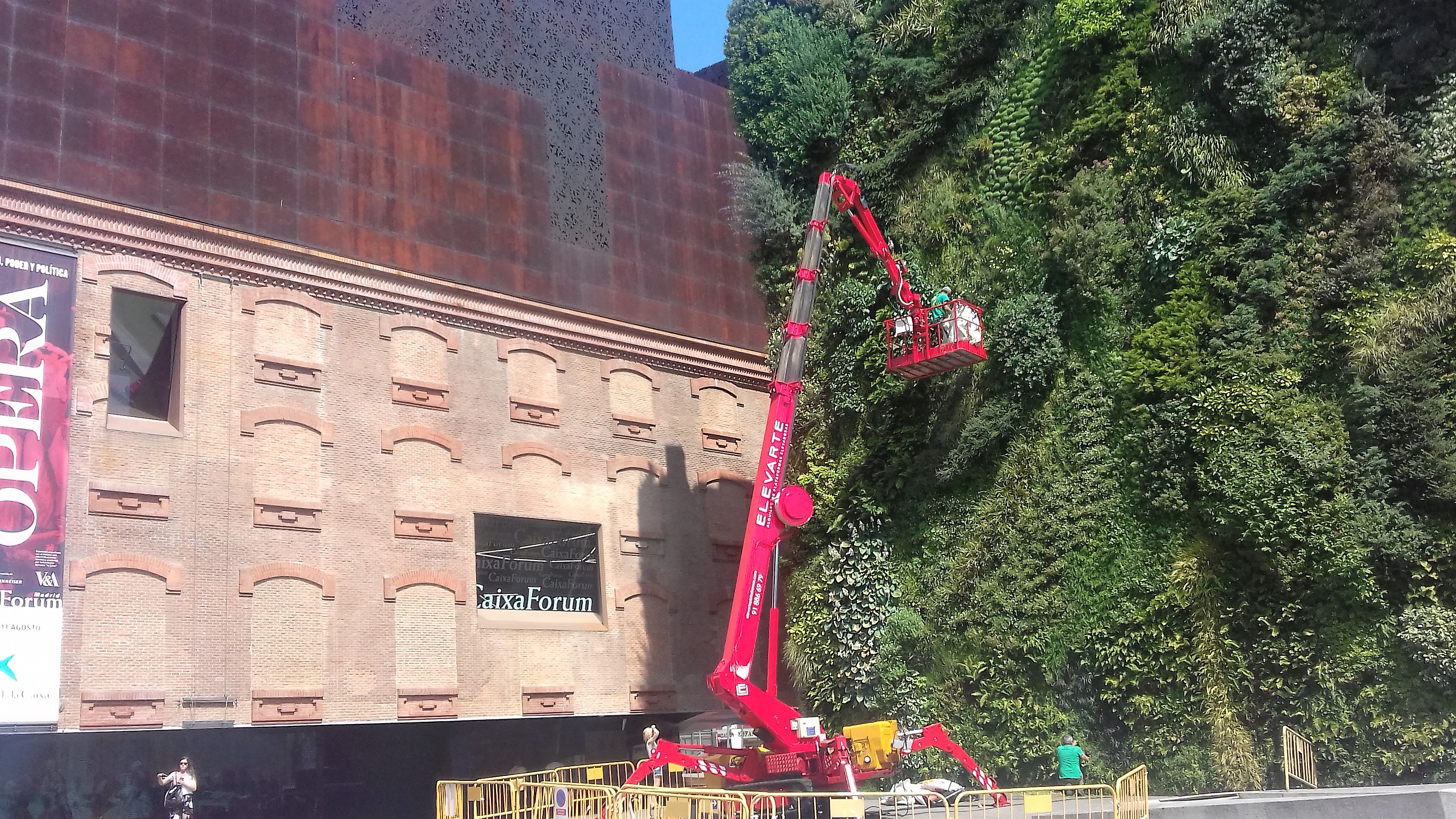 Una vez más, suministramos plataforma araña  30 metros para el mantenimiento del Jardín Vertical de CaixaForum en Madrid.