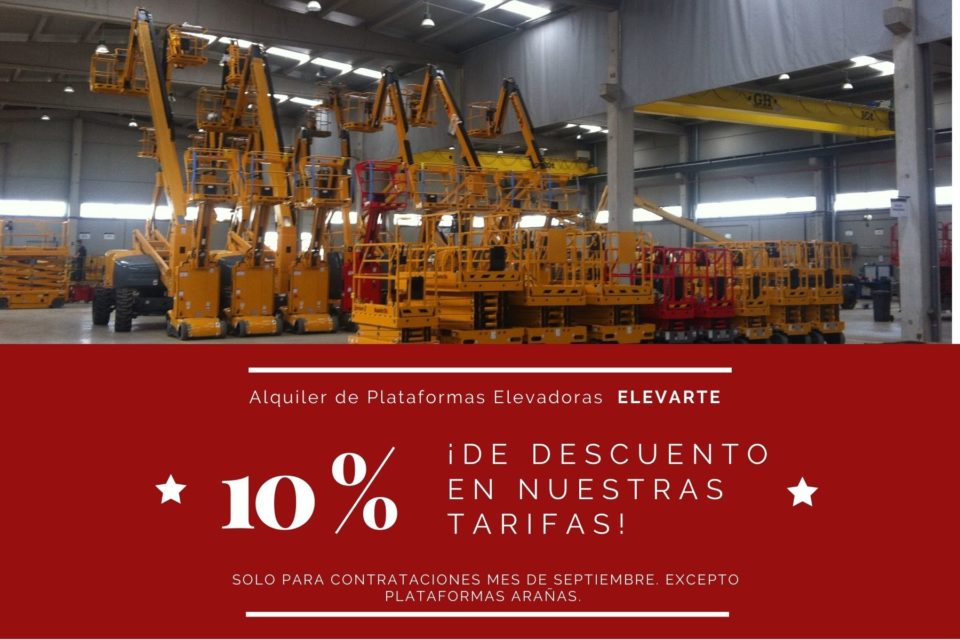Elavarte Alquiler de Plataformas Elevadoras Ofrece Descuentos Especiales. En el inicio de esta nueva temporada, ofrecemos en exclusiva a todos nuestros clientes y nuevos clientes un […]