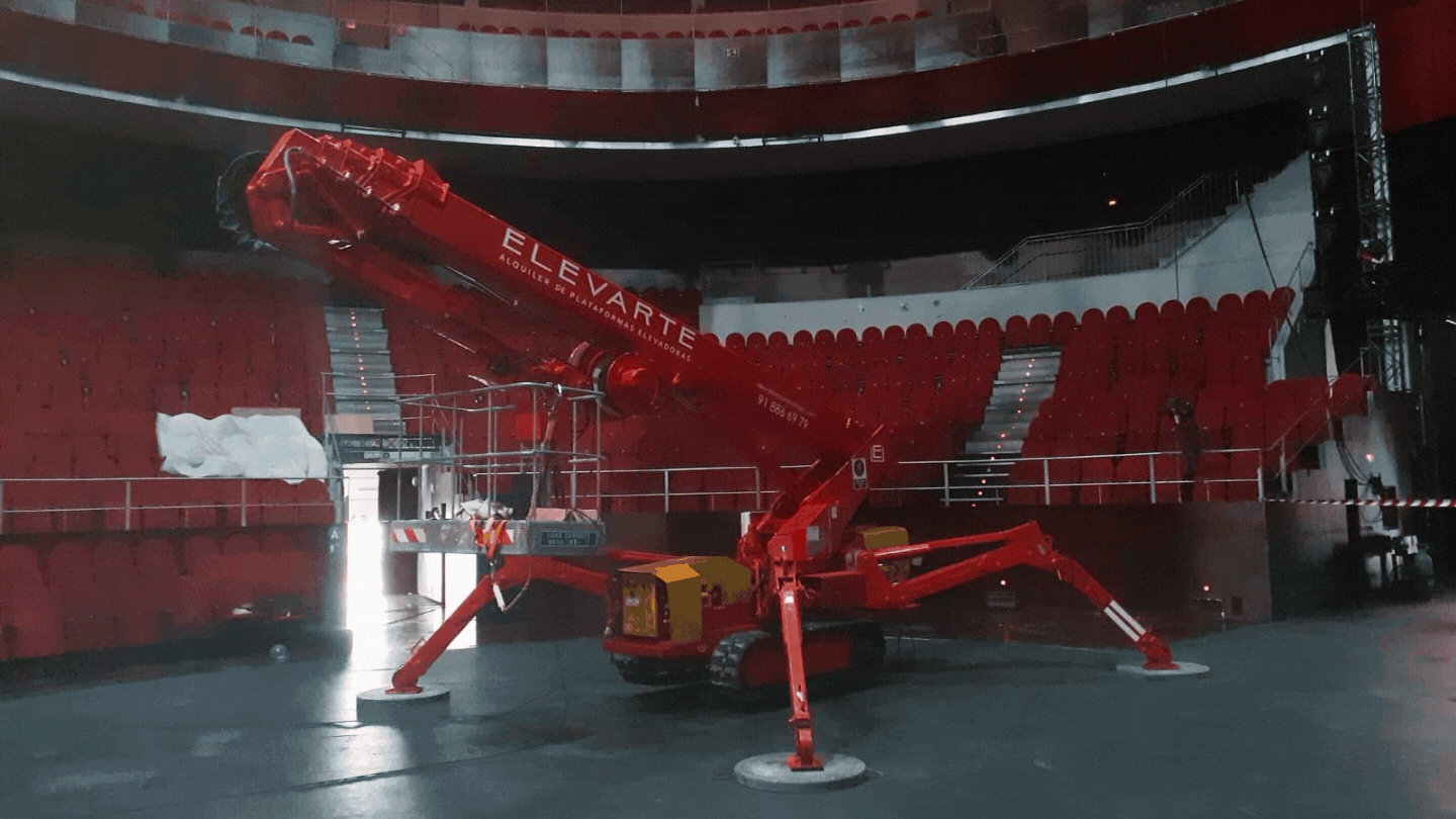 Plataforma Elevadora de Personas tipo Araña Sobre Orugas de 30 metros altura de trabajo en Teatro Circo Price de Madrid