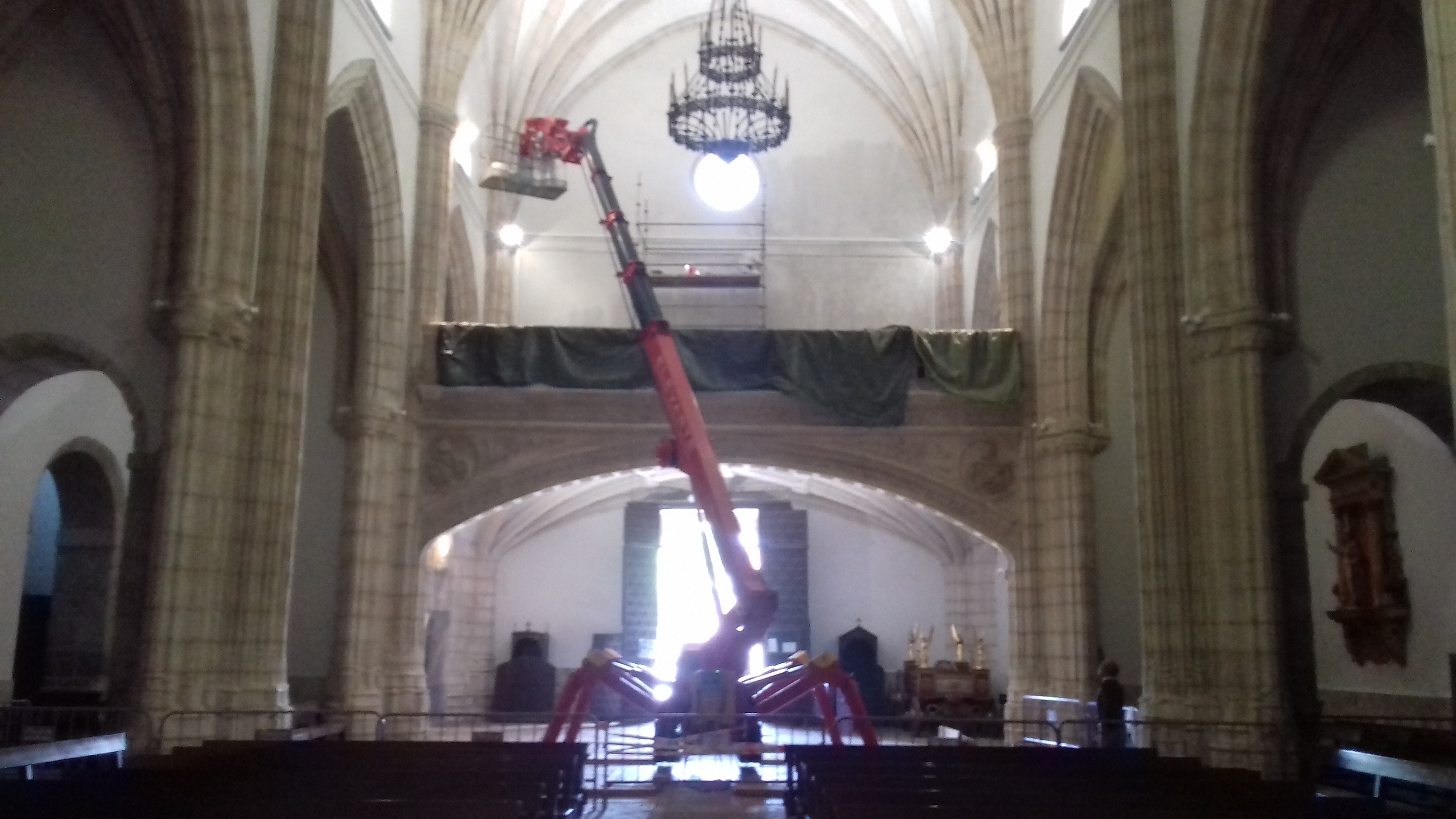 Según  las dimensiones reducidas de esta plataforma, ha permitido el acceso a la parroquia por la puerta convencional, su peso reducido a permite la estabilización en el frágil forjado de esta iglesia de siglo XVI, y su capacidad híbrida,  desarrolla los trabajos con su  motor eléctrico de 220V, evitando la presencia de humos y contaminación acústica.